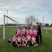 0-0 à la pause. Nous revenons en deuxième période avec de bonnes intentions et nous nous procurons plusieurs occasions notamment sur coup de pieds arrêtés. À la 70eme minutes Sur un corner frappé au deuxième poteau par Tom M, Baptiste remet le ballon dans les six mètres, bien suivi par Valentin A qui pousse le ballon du bout du pied au fond des filets. 1-0 pour les noirs et roses.