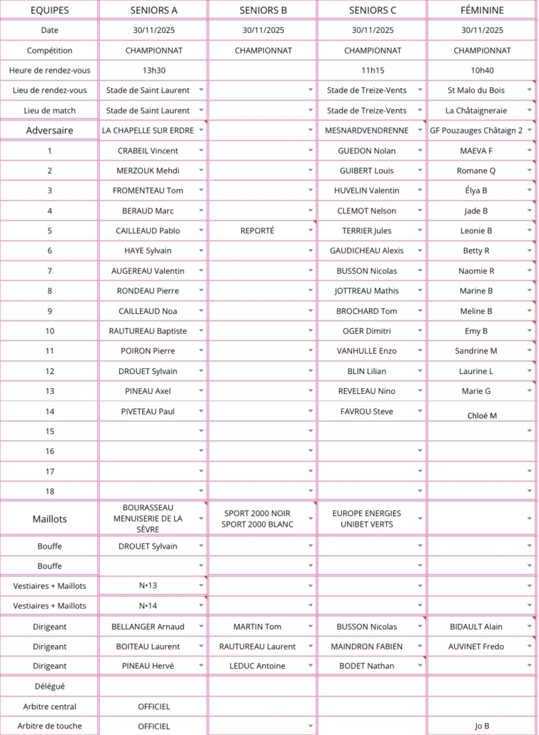 Planning des entrainements
