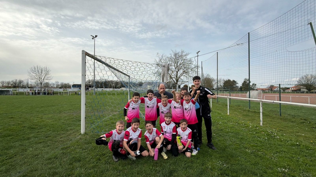 0-0 à la pause. Nous revenons en deuxième période avec de bonnes intentions et nous nous procurons plusieurs occasions notamment sur coup de pieds arrêtés. À la 70eme minutes Sur un corner frappé au deuxième poteau par Tom M, Baptiste remet le ballon dans les six mètres, bien suivi par Valentin A qui pousse le ballon du bout du pied au fond des filets. 1-0 pour les noirs et roses.